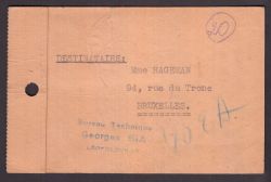 N°234 +244 sur étiquette de colis expédiée en recommandé de Léopoldville le 28.9.1945 à destination de Bruxelles.