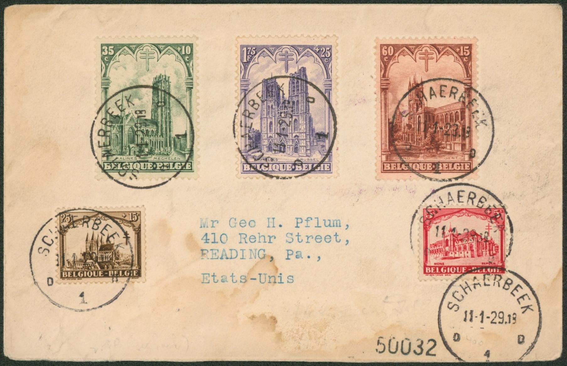 n°267/71 + n°259 x2 sur lettre de Schaerbeek en recommandé çàd étiquette au verso > Reading, P.A. (USA)