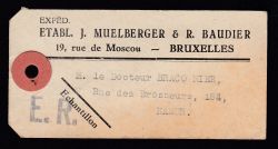 Préoblitéré N°612 en paire au verso de l'étiquette de colis expédiée de Bruxelles (Entête) vers Namur.
