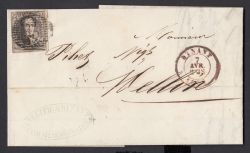N°6 margé sur LAC datée de Dinant le 5 avril 1855, expédiée de Dinant (P33) à destination de Wellin. Cachet d'arrivée au verso.
