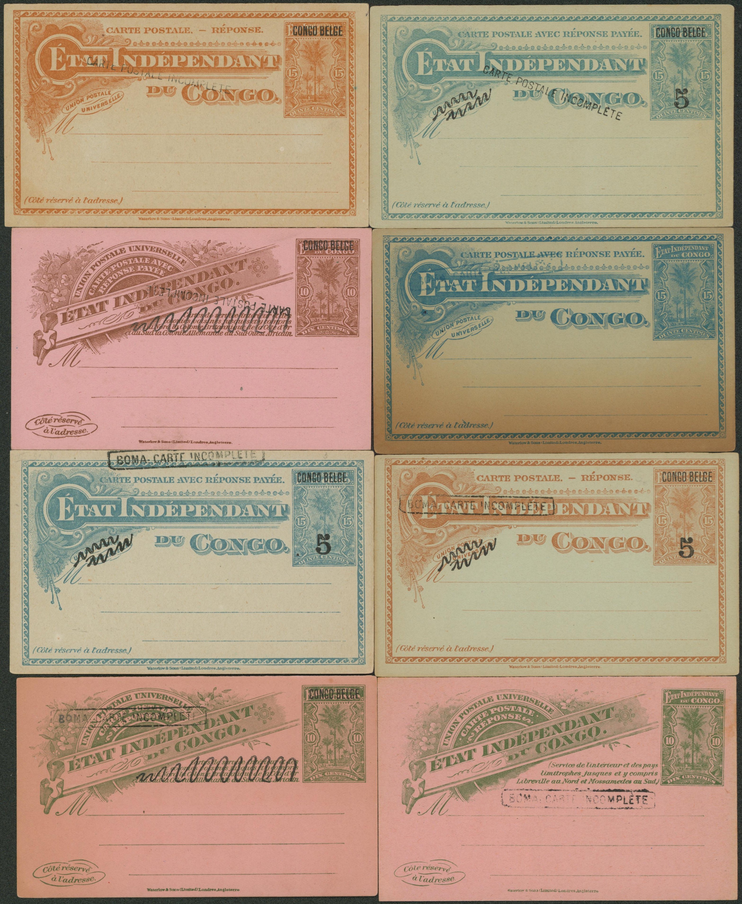 Congo Belge - Ensemble de 11 entiers neuf type "Palmier" + griffe encadrée ou non CARTE INCOMPLETE. Bel ensemble, pour étude. "