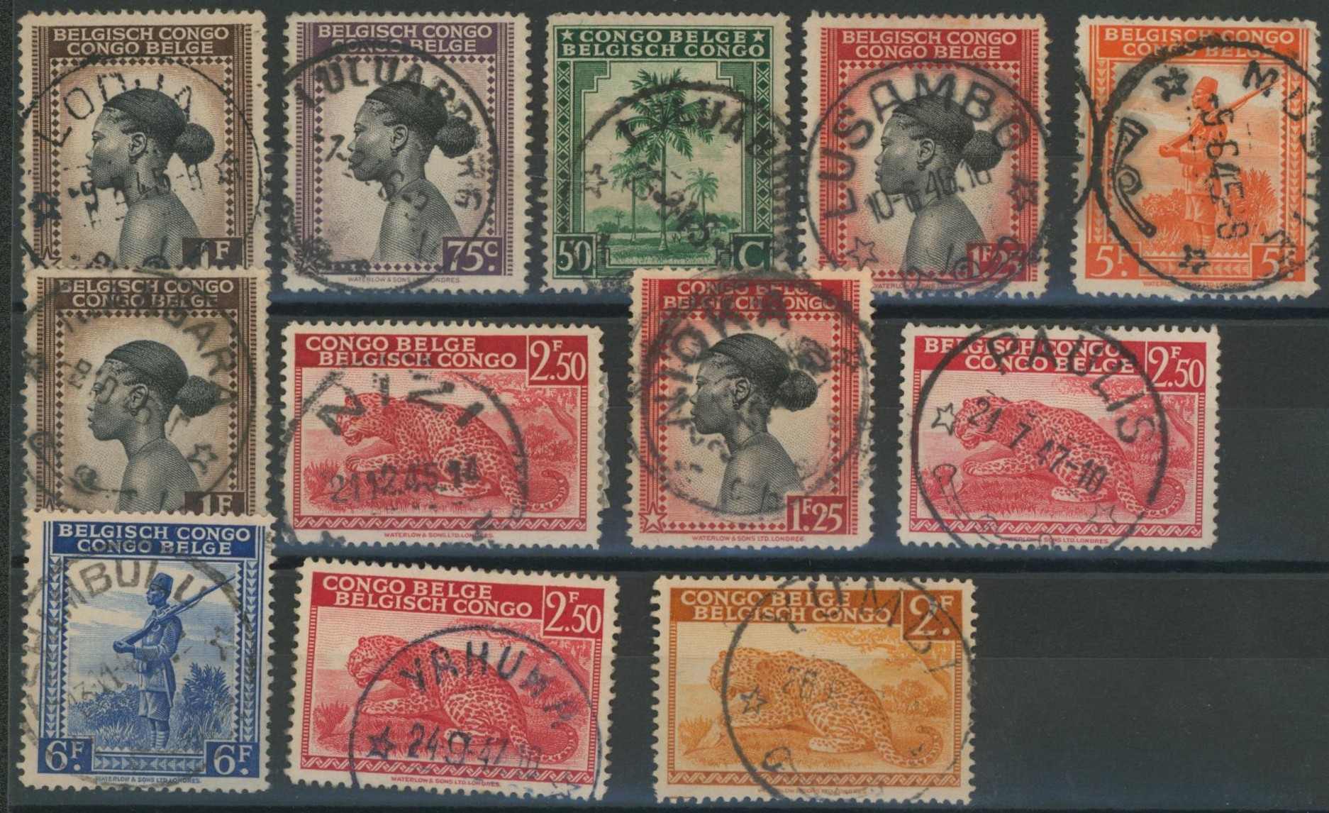 Congo Belge - Palmiers et sujet divers : ensemble de 12 timbres avec oblitérations choisies. A voir !