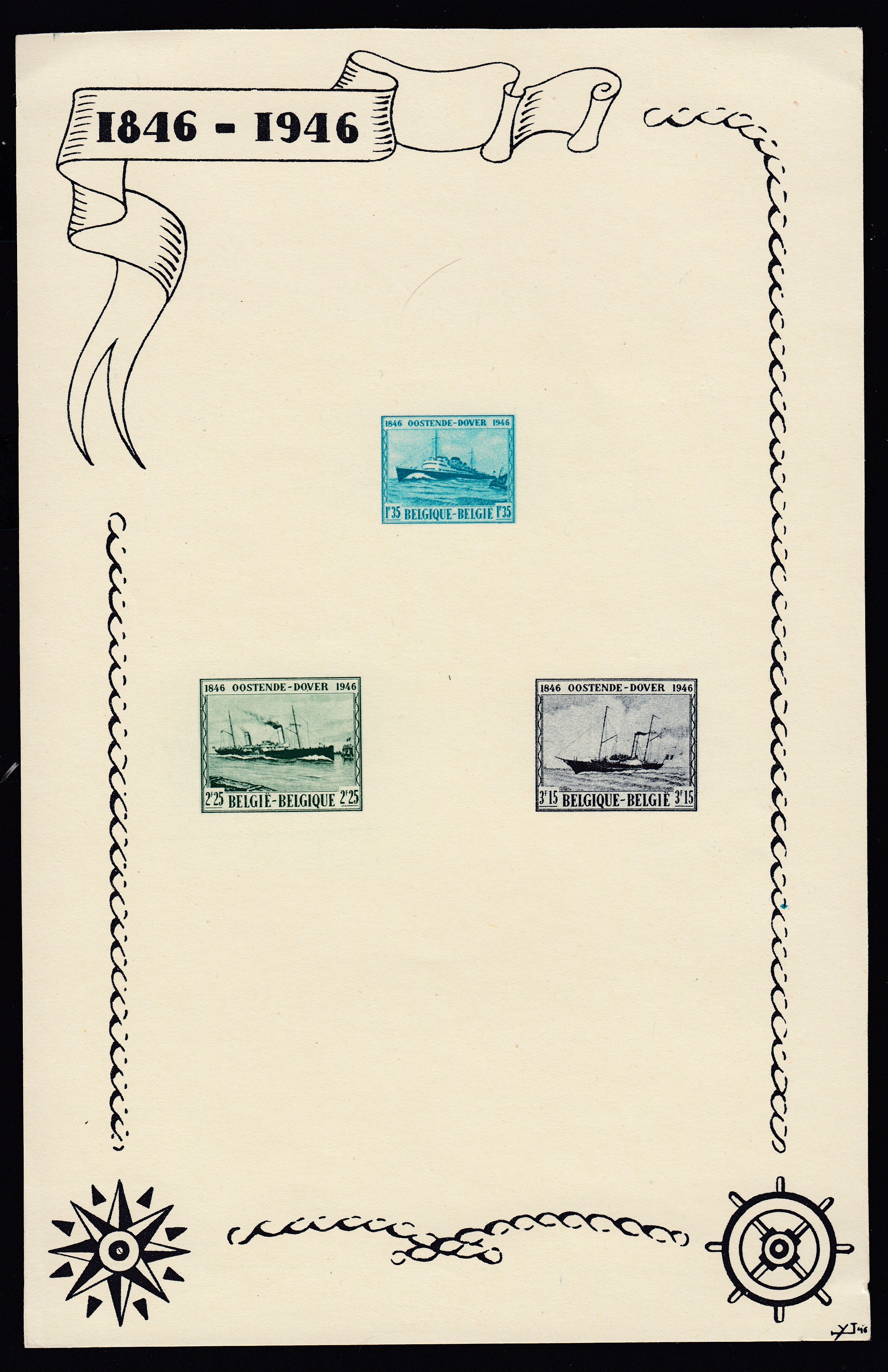 Feullet de luxe des Tp N°725/27. Commémoration de la malle Ostende-Douvres.