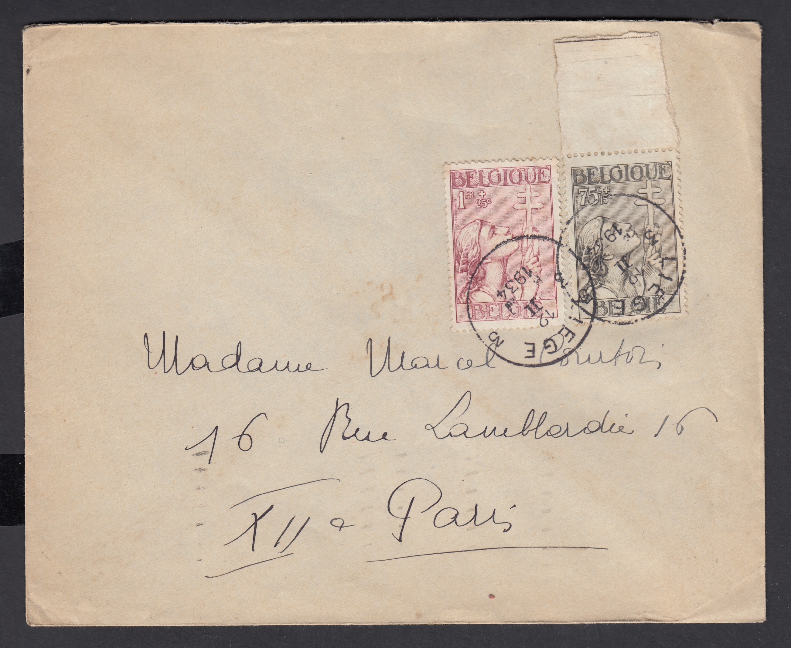 N°380 +381 obl. LIEGE s/L vers Paris 1934.
