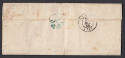 N°5 ( 3 marges, au filet en bas) sur LAC datée et expédiée de Bruxelles le 24 déc.1850 à destination du Mans en France. Cachet d'arrivée au verso.