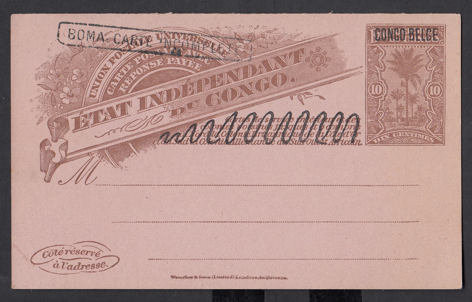 Ep10c type « Palmier » surchargé « CONGO BELGE » ocre, neuf avec griffe encadrée en noir « BOMA CARTE INCOMPLETE ».