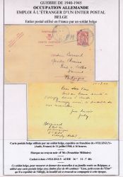 Explicatif joint : Ep0c type « Petit sceau de l'Etat » expédié par un soldat belge en France en frnchise de Villegly le 11 juillet 1940 à destination de Pont à Celles.
