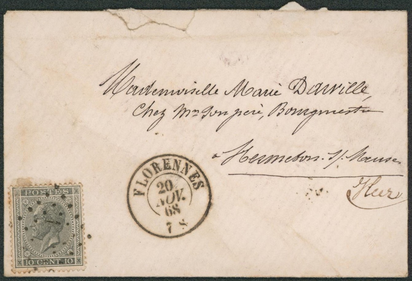 n°17 sur enveloppe obl Pt 130 çàd Florennes > Hermeton-S-Meuse par Heer