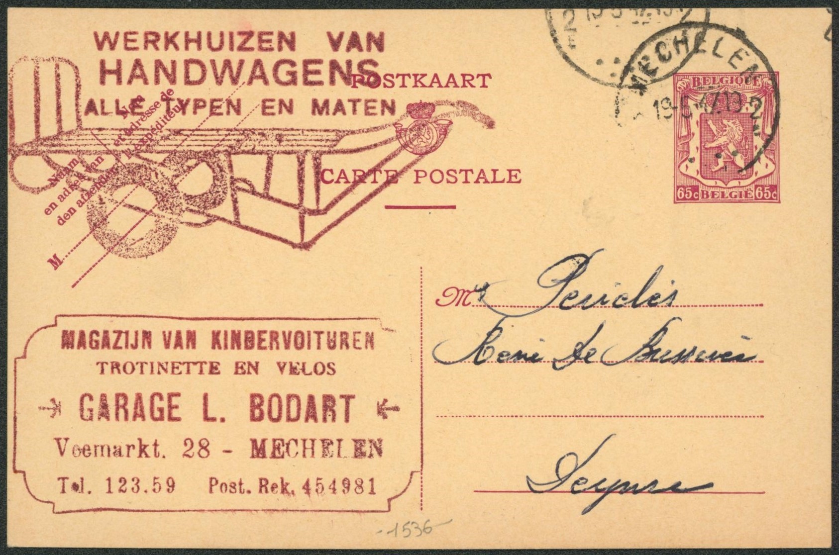 EP au type 65ctm petit sceau de l'état expédié de Mechelen + cachet publicitaire (Magazijn van kindervoituren) > Deinze