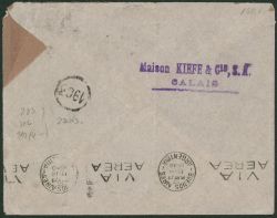 Yv n°283, 376, 392/94 sur lettre par avion de Calais > Buenos Aires (Argentine)