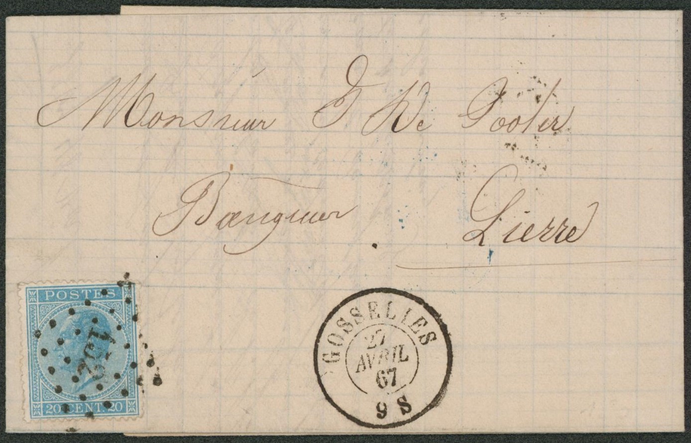 n°18 sur LAC à en-tête obl Pt 152 çàd Gosselies > Lierre