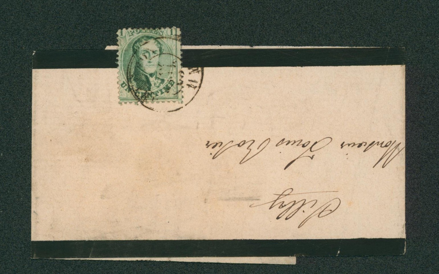 n°13 sur bandelette pour imprimé (complet) obl double cercle peu lisible > Gilly çàd arrivée DC. Superbe et rare