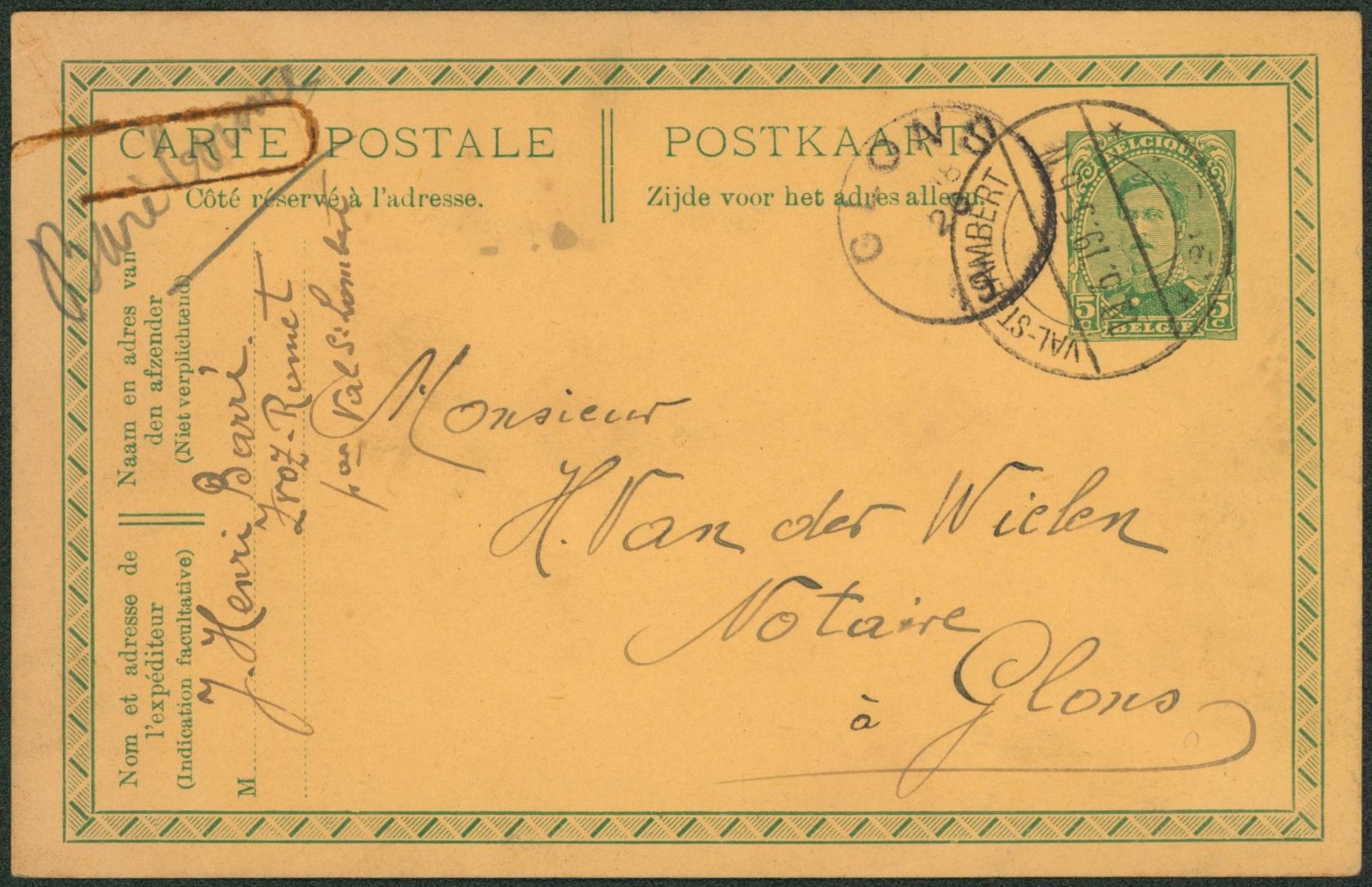 EP au type 5ctm vert obl à pont (belgien gratté) "Val-St-Lambert" > Glons. "