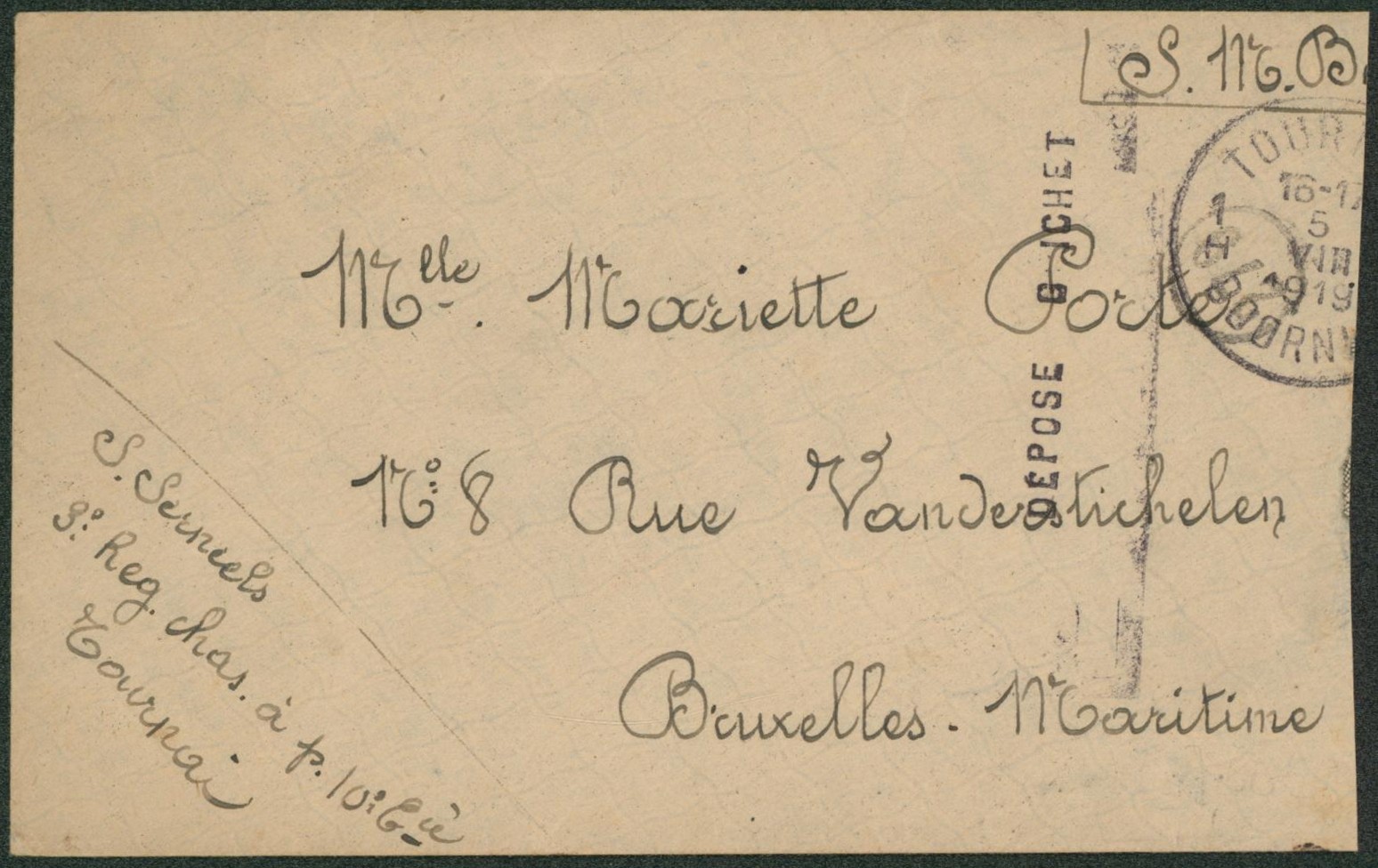 Lettre en SMB expédié de Tournai / Doornik + griffe déposé au guichet > Bruxelles maritime.