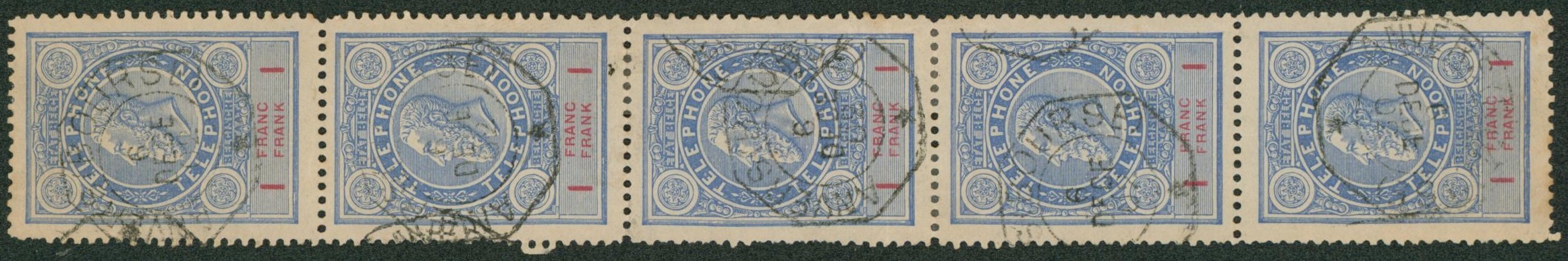 TE25 en bande de 5 verticale obl télégraphique "Anvers (bourse)". RR ! "