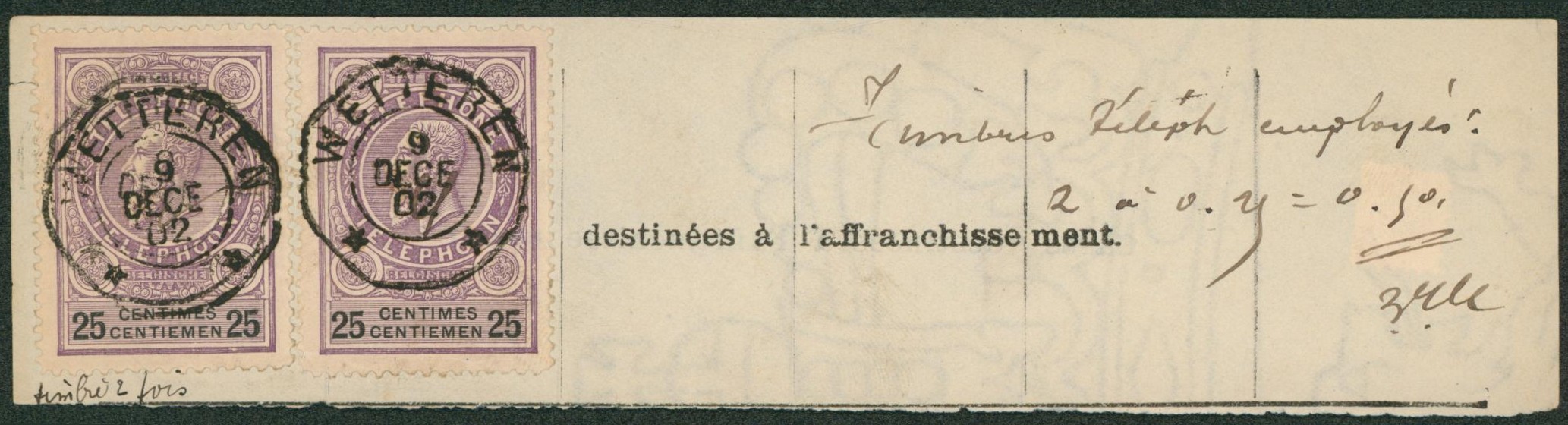 TE21 x2 sur fragment de télégramme obl télégraphique "Wetteren""