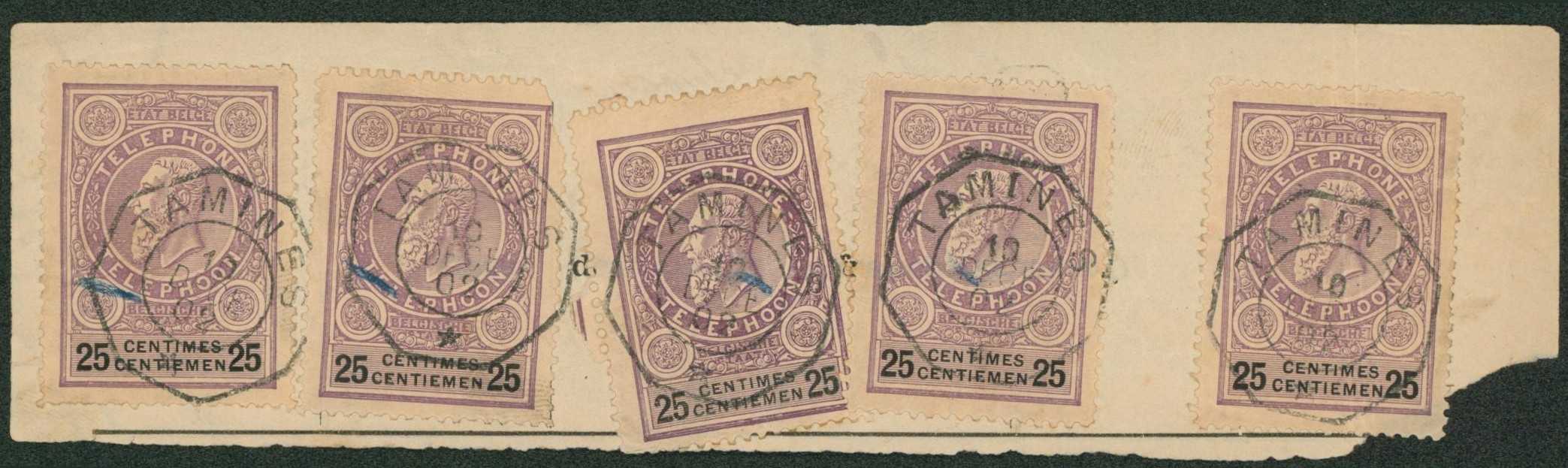 TE21 x5 sur fragment de télégramme obl télégraphique "Tamines". "