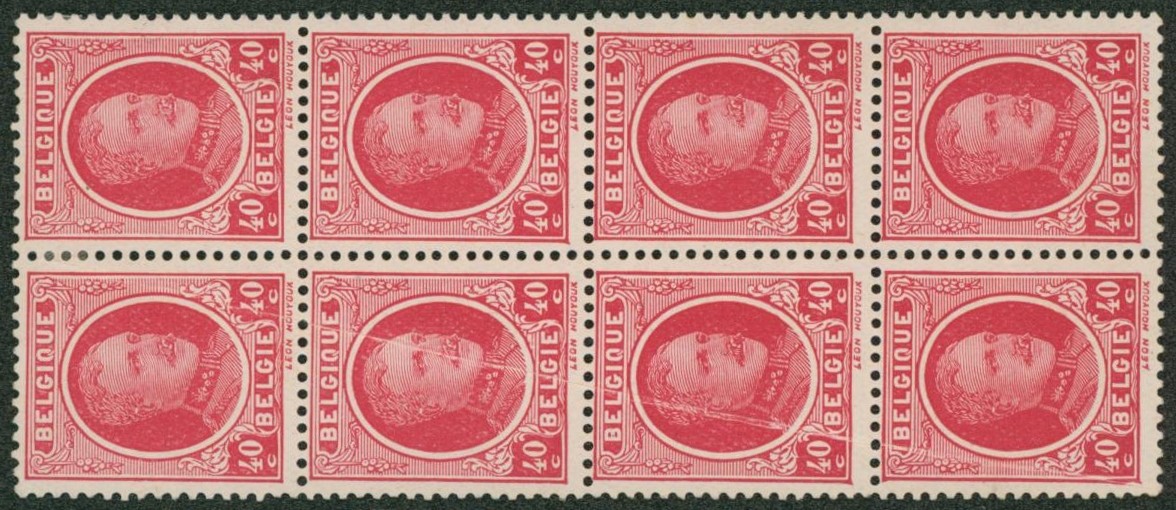 Houyoux - n°202 en bloc de 8 (2TP charnières le reste neuf sans charnières) + grand pli accordéon. Superbe
