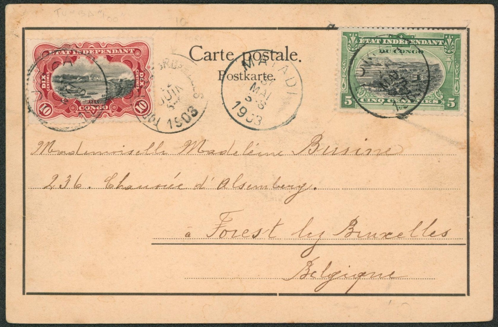 Congo Belge - n°16 et 17 sur CP vue obl simple cercle Tumba via Matadi > Forest-lez-Bruxelles