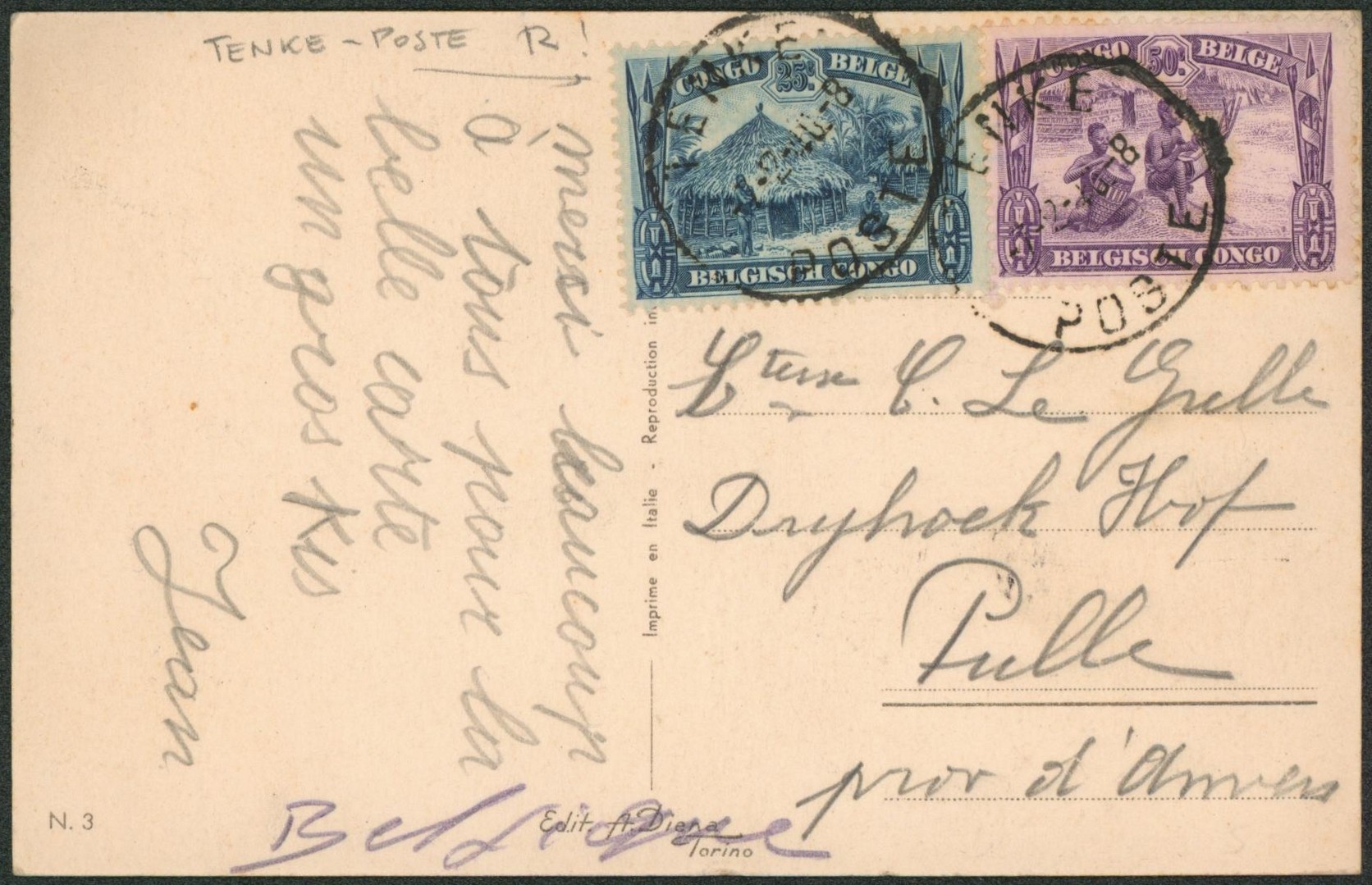 Congo Belge - n°171 et 173 sur CP obl simple cercle "Tenke / Poste" > Pulle. "