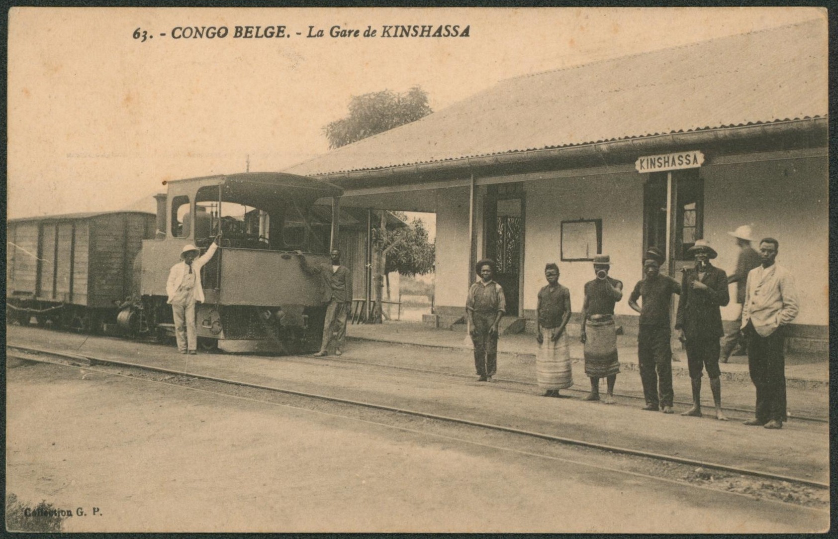 Carte postale neuve Congo Belge la gare de Kinshasa + tram à vapeur ! Superbe. Animée