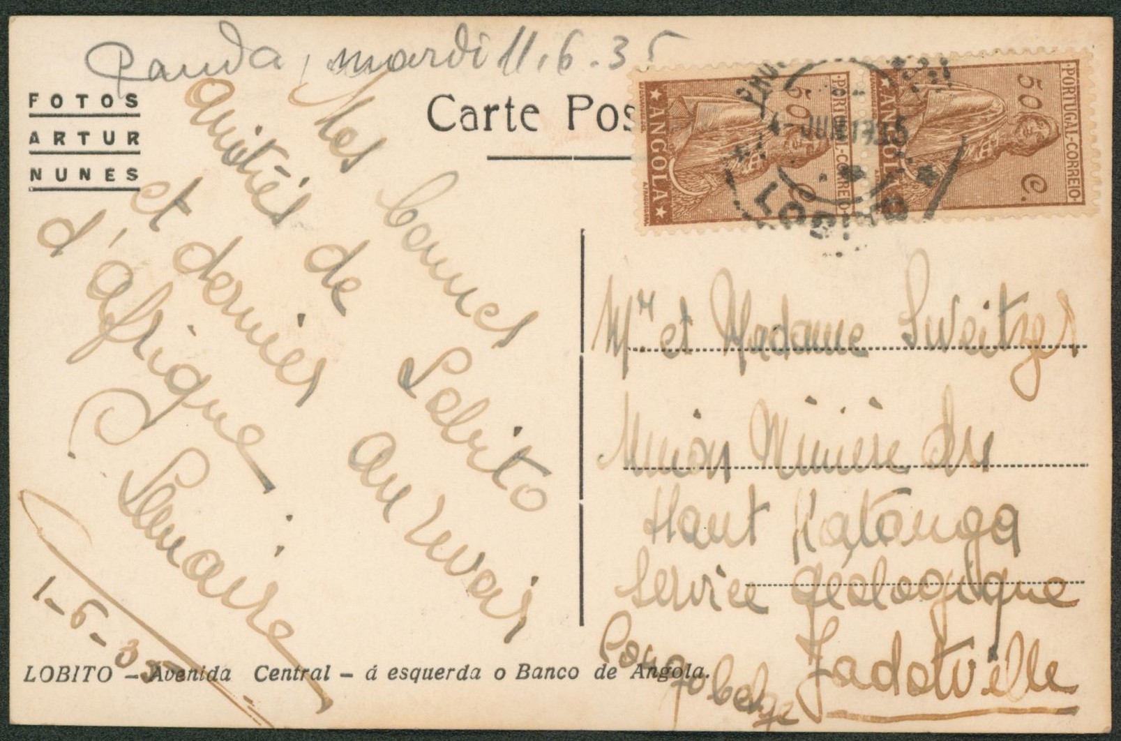Carte photo (Portugal) expédié de Lobito > union minière du Haut Katanga çàd Jadotville.