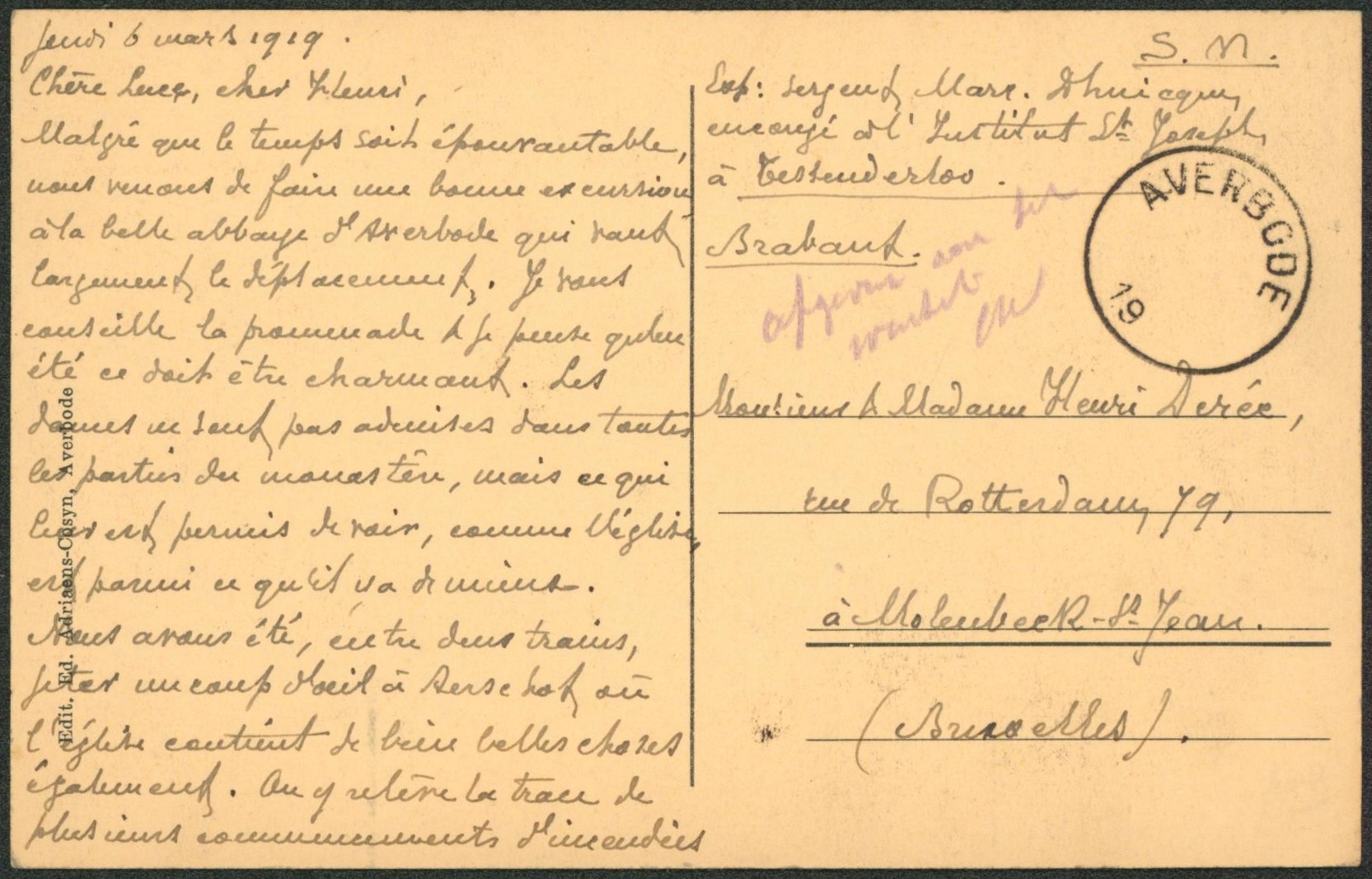 CP en S.M. + cachet de fortune "Averbode" > Molenbeek-St-jean"