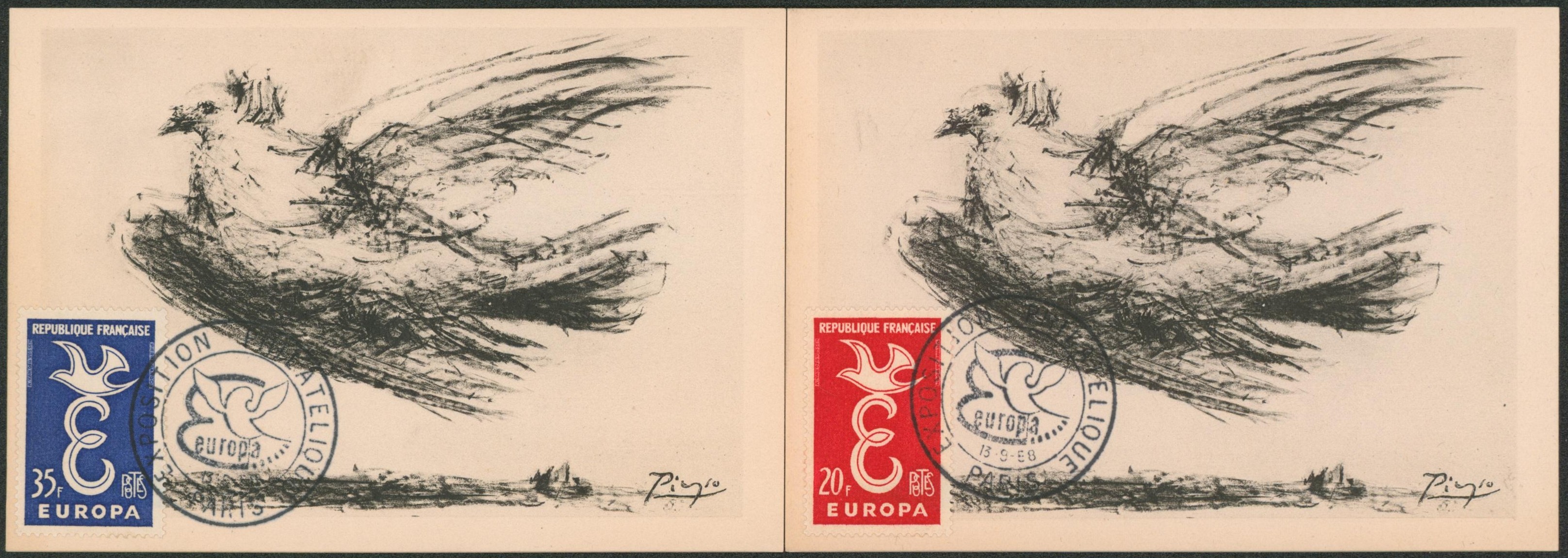 EUROPA (France) - Carte postale Colombe de Picasso (PICASSO, Artiste, peintre) type carte maxium europa 1958, tirage 250 exemplaires. RR !