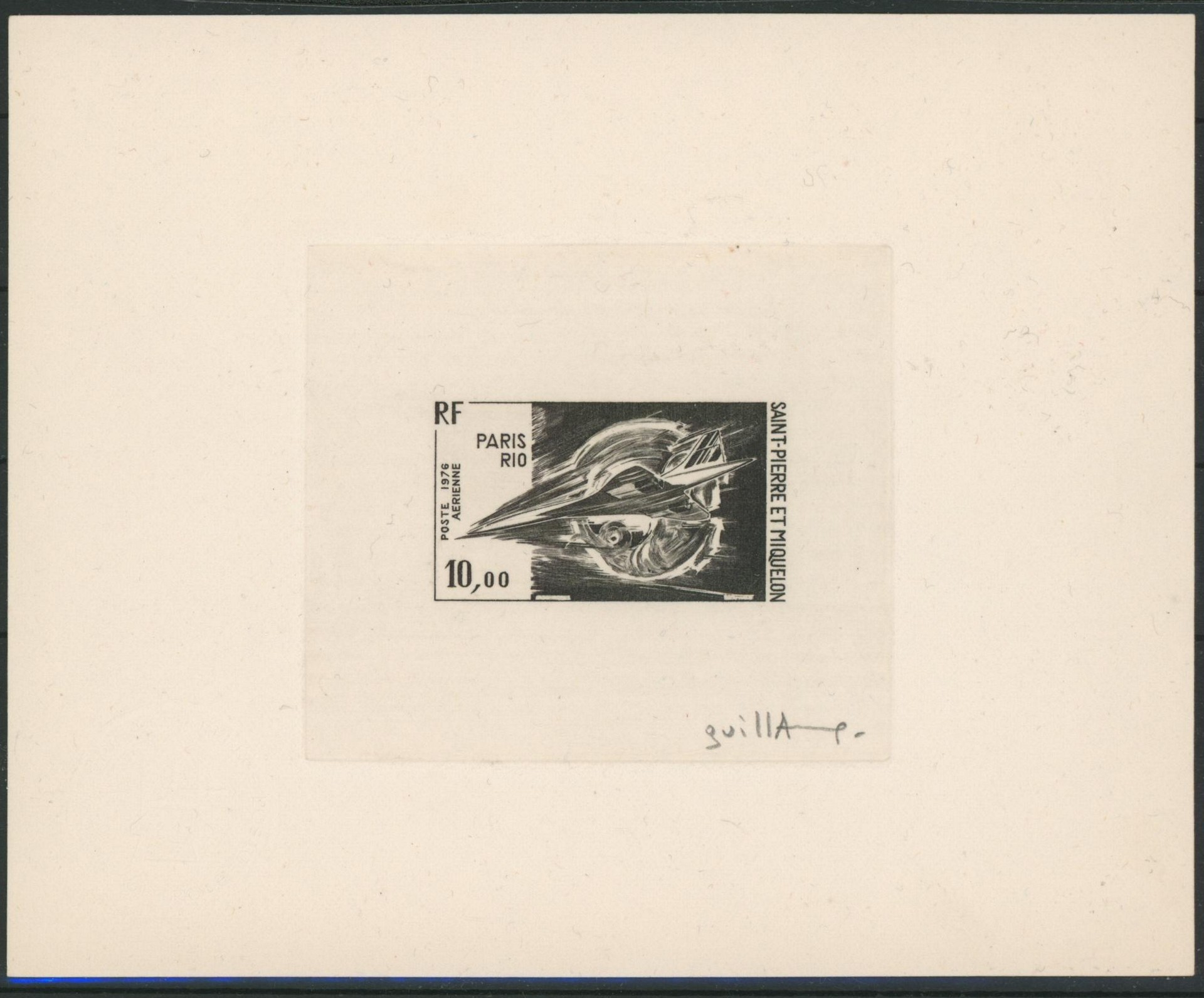 St-Pierre et miquelon - épreuve d'artiste noir et blanc 10RF Paris-Rio type PA n°62 signé Guillaume / Concorde.