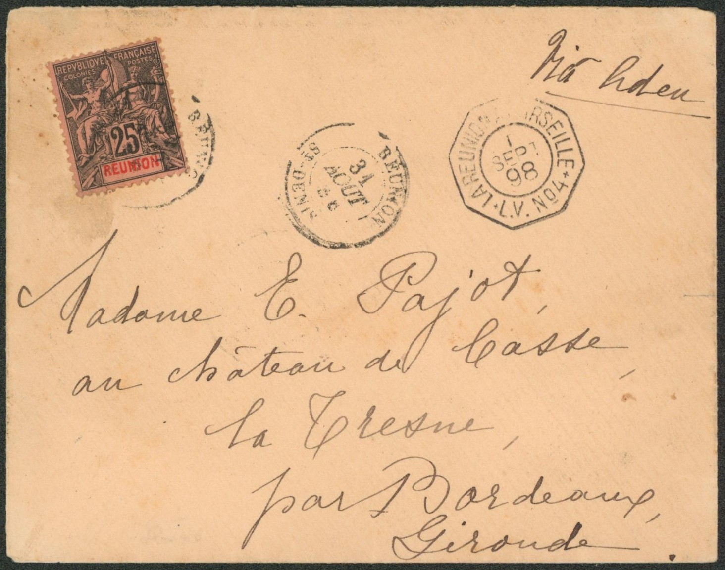 Collection (ligne maritime) - Réunion 25C sur lettre + obl paquebot "La réunion à Marseille / L.V. n°4" > La tresne"