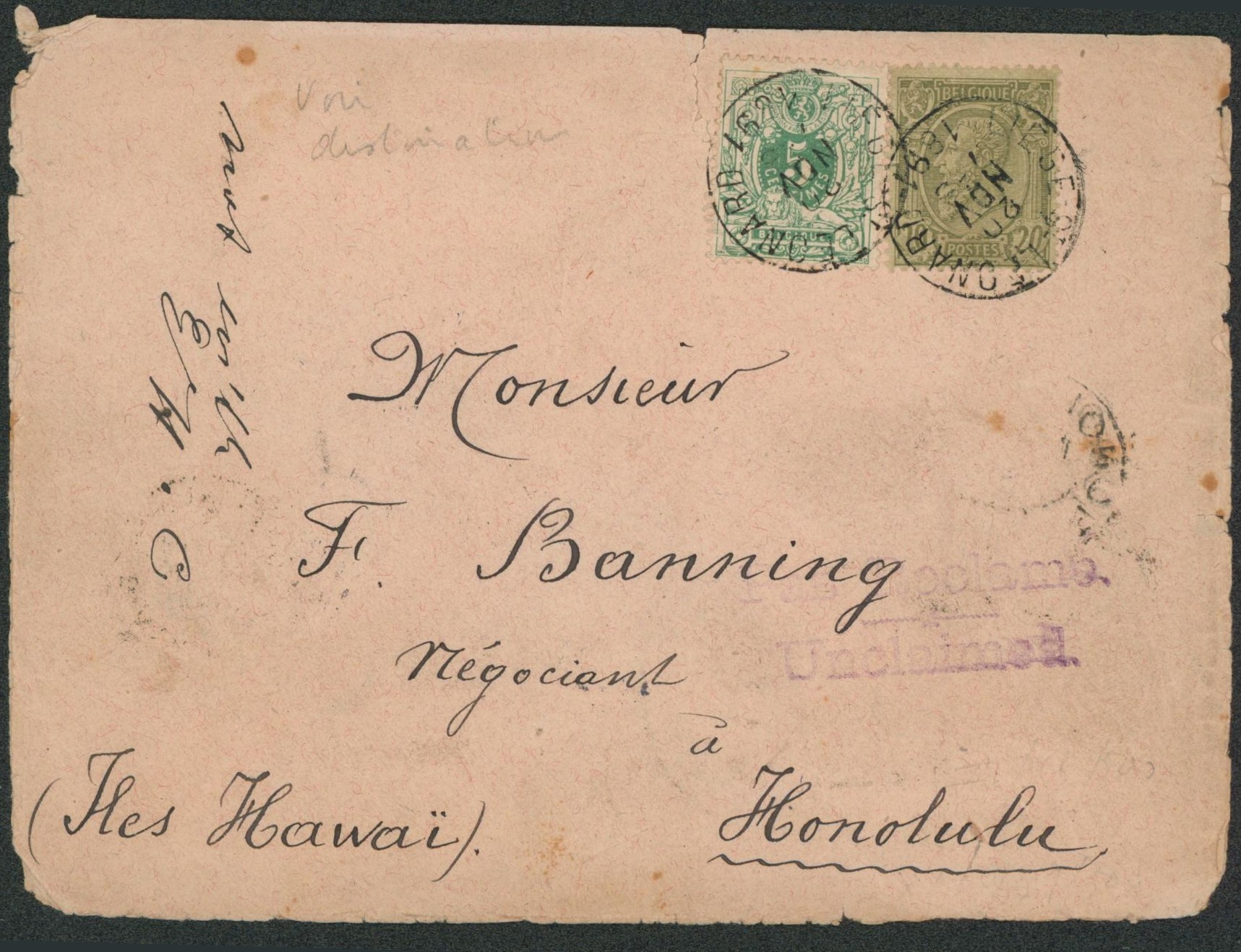 n°45 et 47 sur lettre obl simple cercle Liège-St-Léonard > Honolulu (Iles Hawaï) via San Fransisco / Bonne destination.