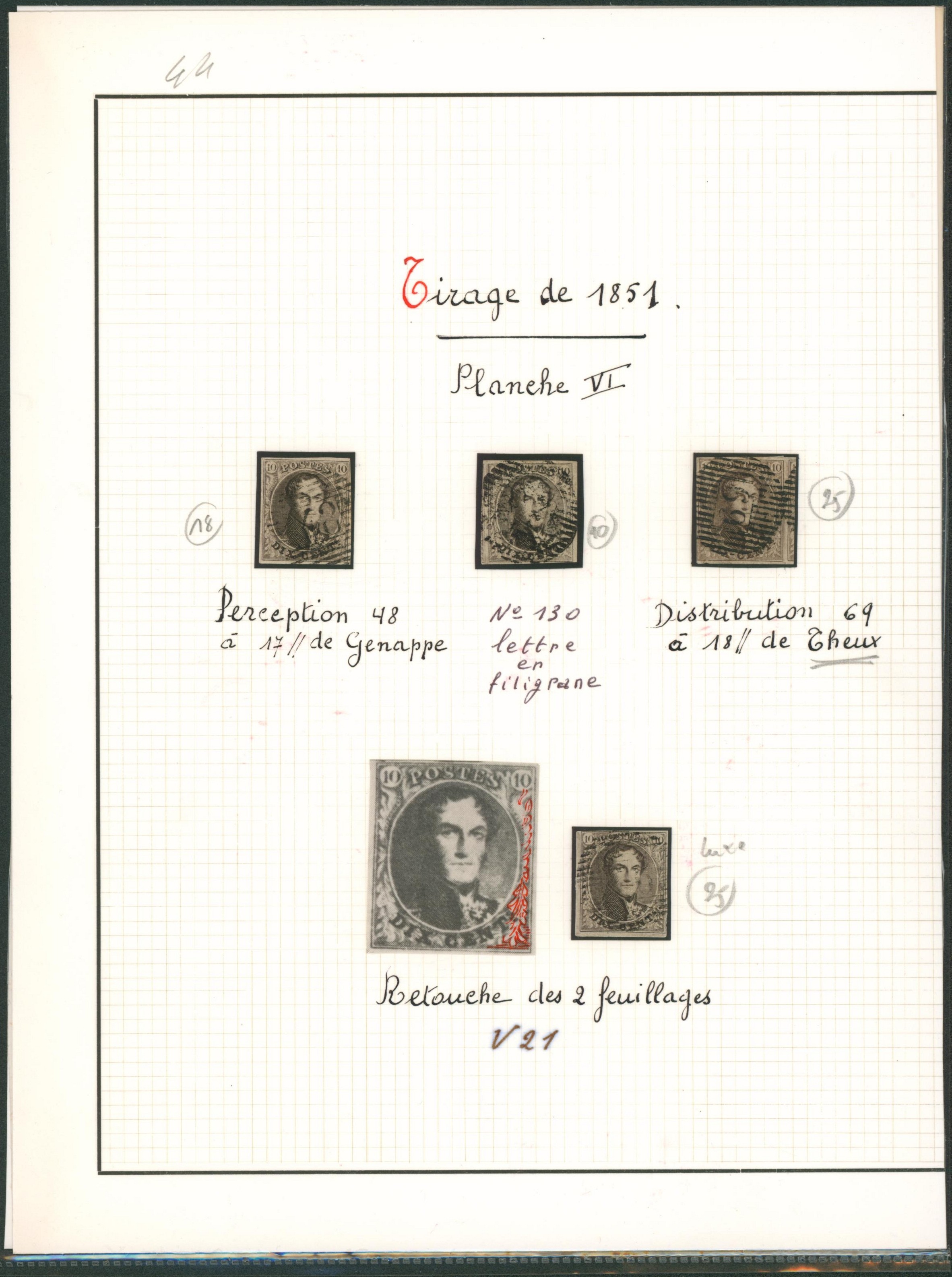 Page de collection - n°6 planche VI, 5 exemplaires. Superbe