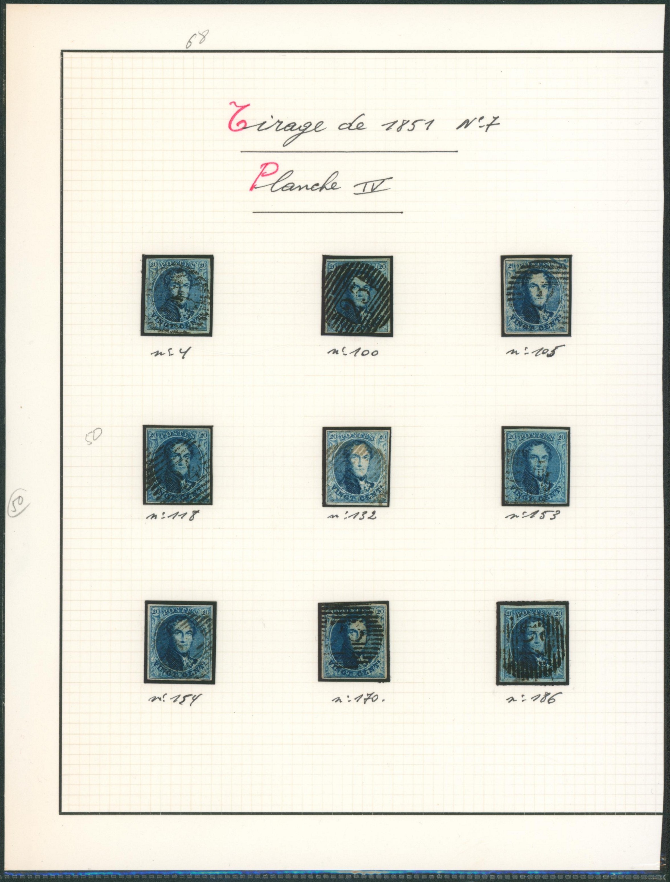Page de collection - n°7 planche IV planchage sur 9 timbres margés.