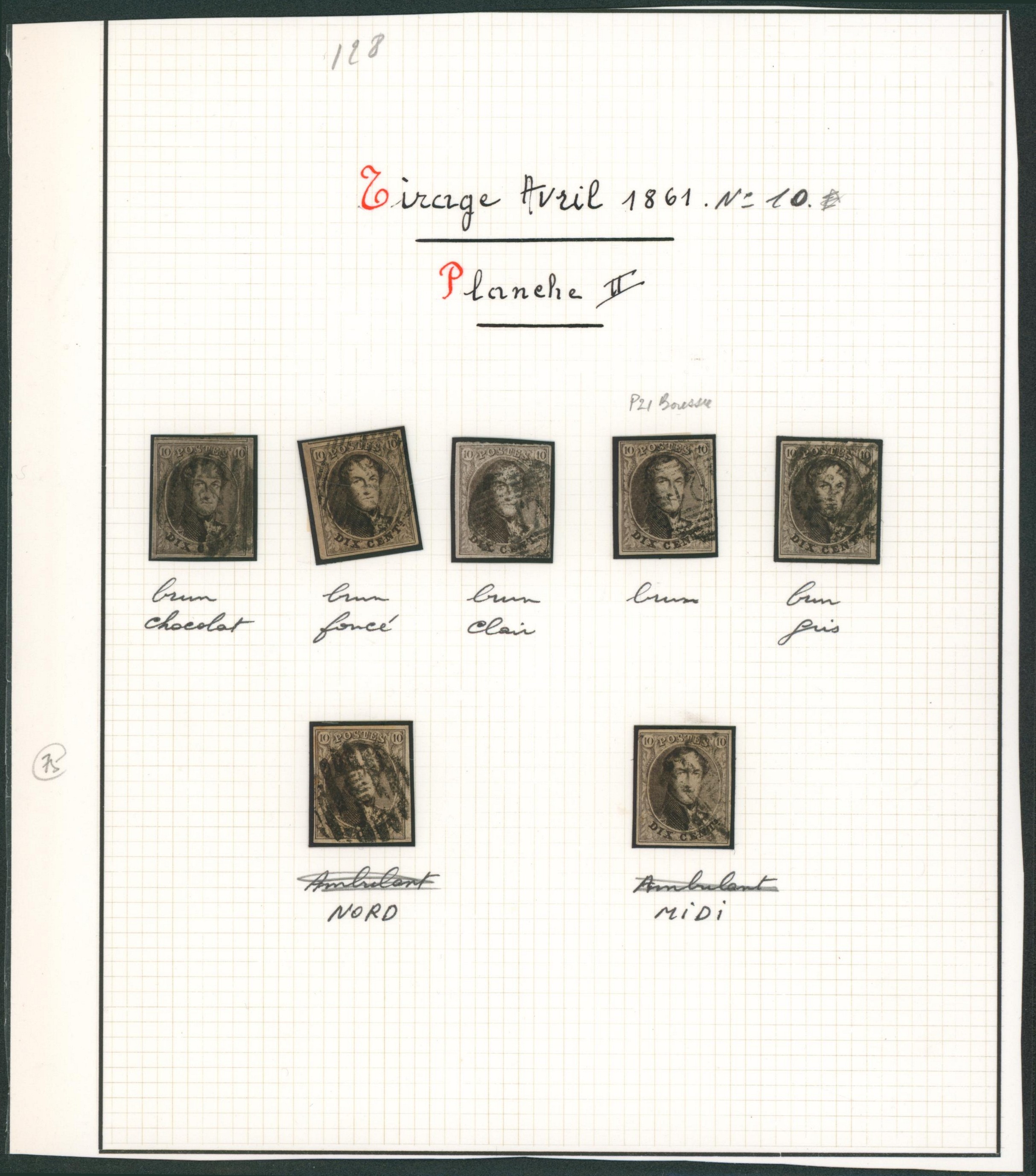 Page de collection - n°10 planche II 7 exemplaires dont nuancier + obl P NORD et P MIDI