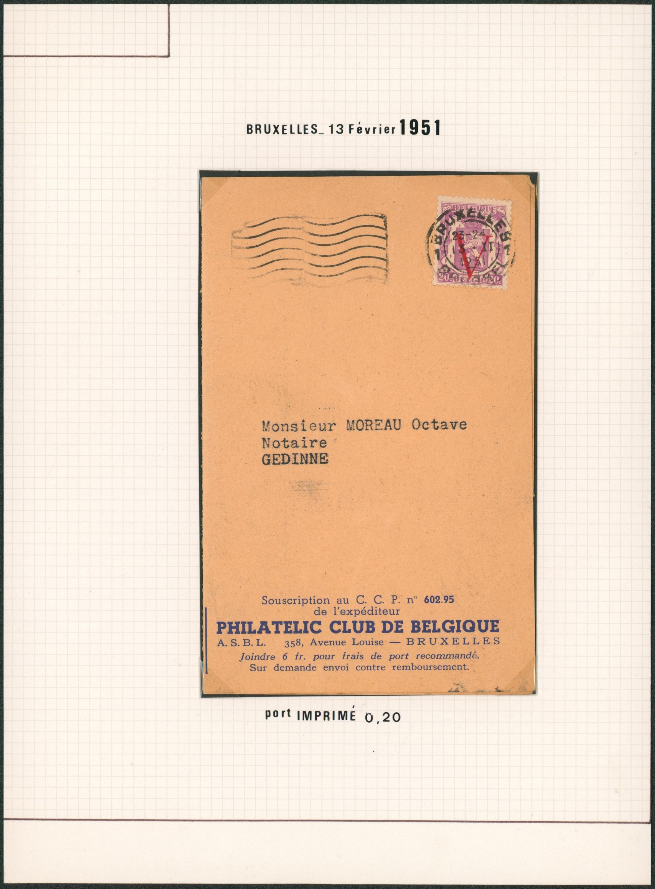 Page de collection - petit sceau de l'état type V, affranchissement à 20ctm port imprimé de Bruxelles > Gedinne