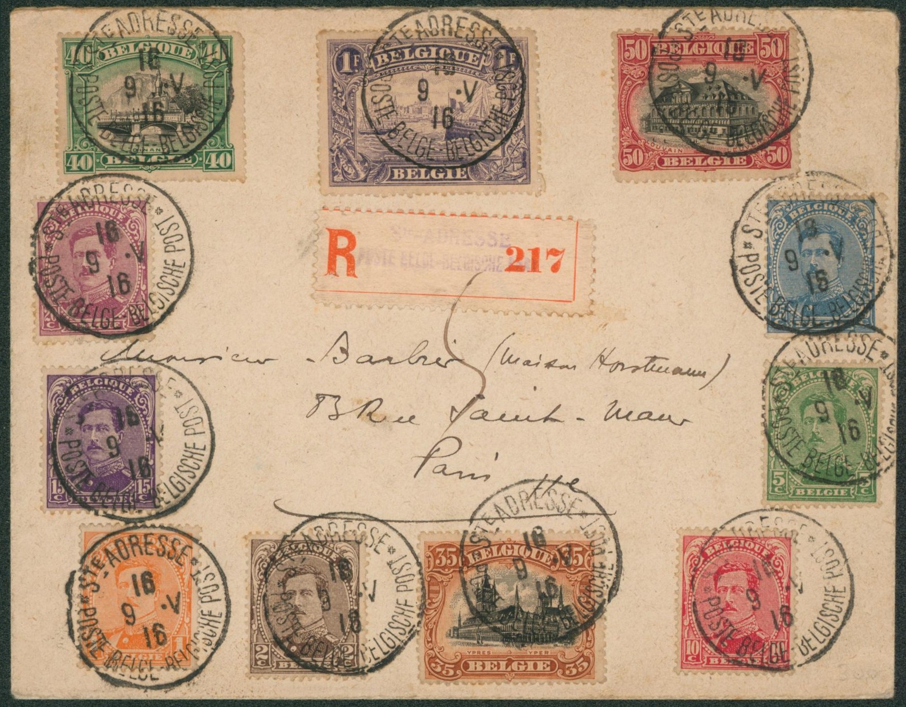 Albert I - Affranchissement de complaisance très coloré sur lettre en recommandé de Ste-Adresse > Paris