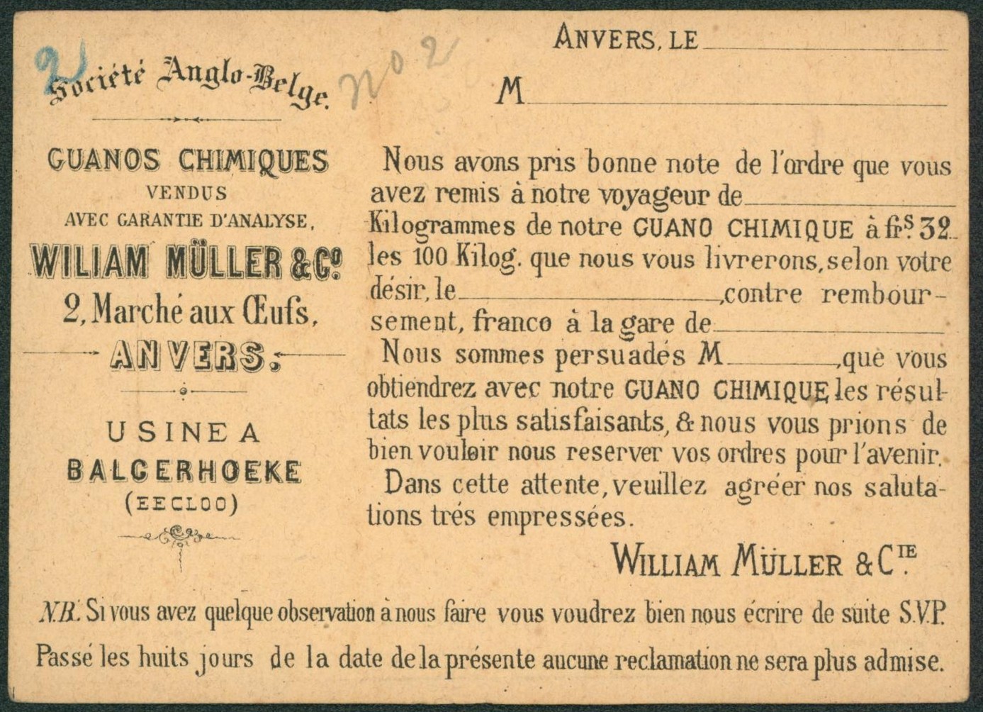 EP au type 5ctm gris neuf (premier entier belge) + Repiquage Société anglo-belge GUANOS CHIMIQUES, Wiliam Müller & Co (Anvers). Superbe