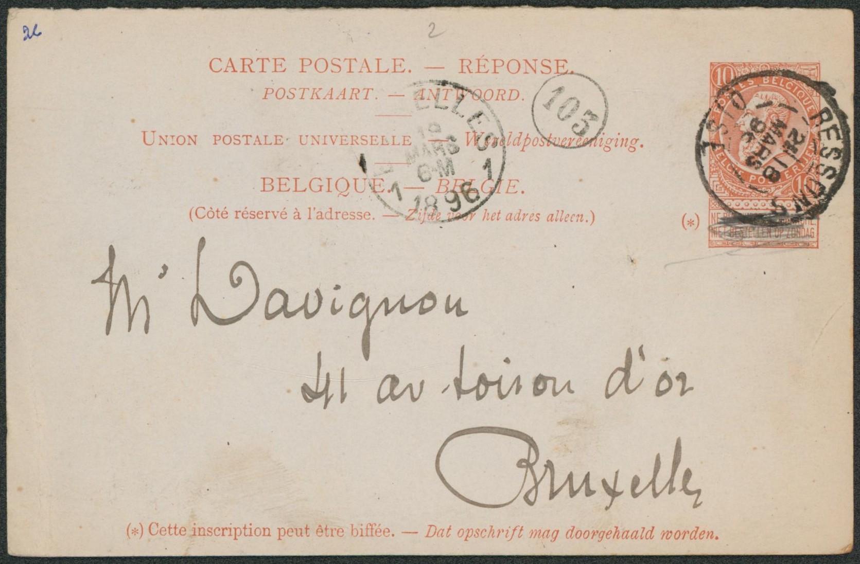 Ep au type 10ctm orange fine barbe (SBEP n°26, réponse) de Ressons (Oise, France) > Bruxelles / Texte