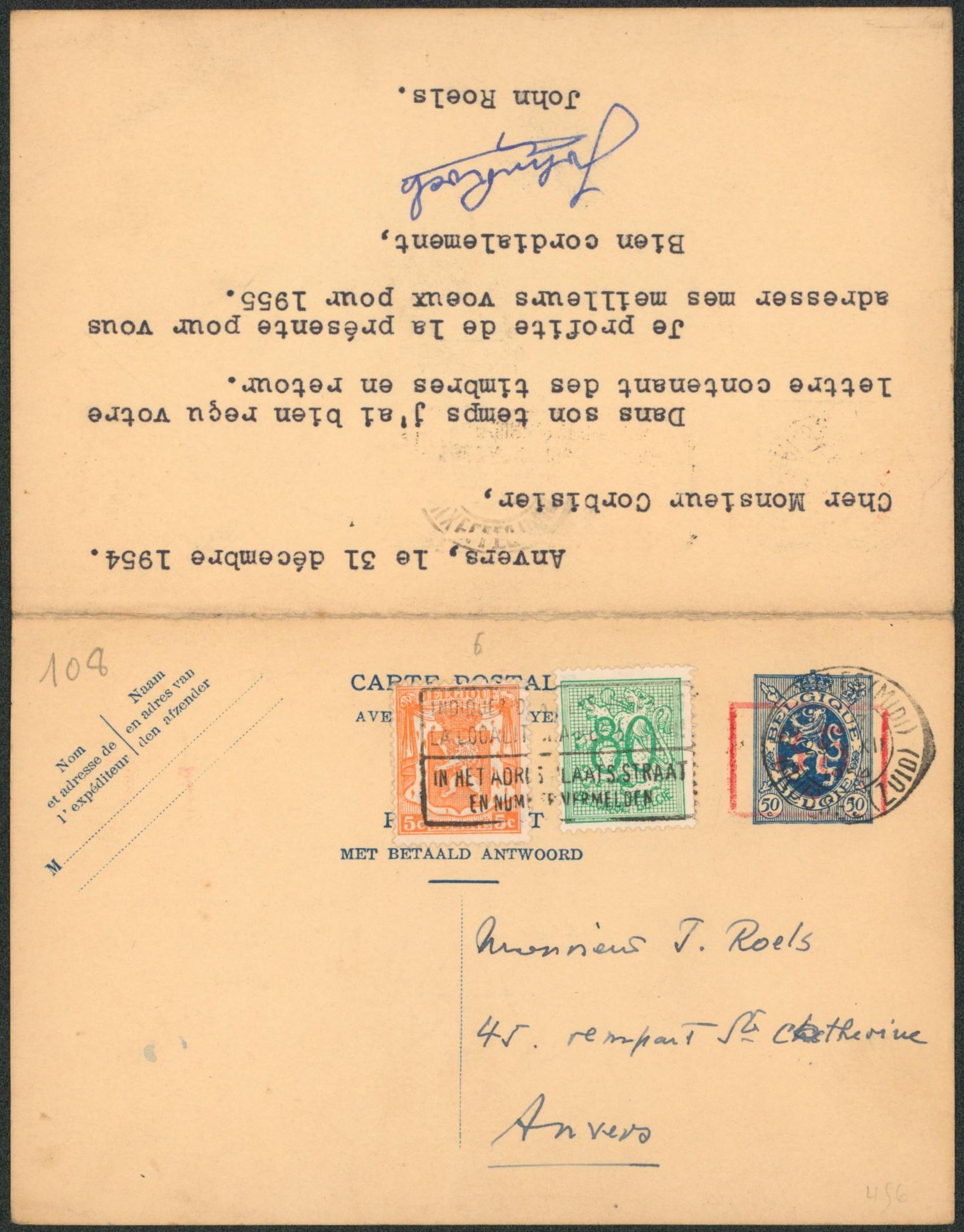 EP (double) au type 35 sur 50ctm bleu + Affranch. Complémentaire (SBEP n°109) de Bruxelles > Anvers + retour. Complet, TB
