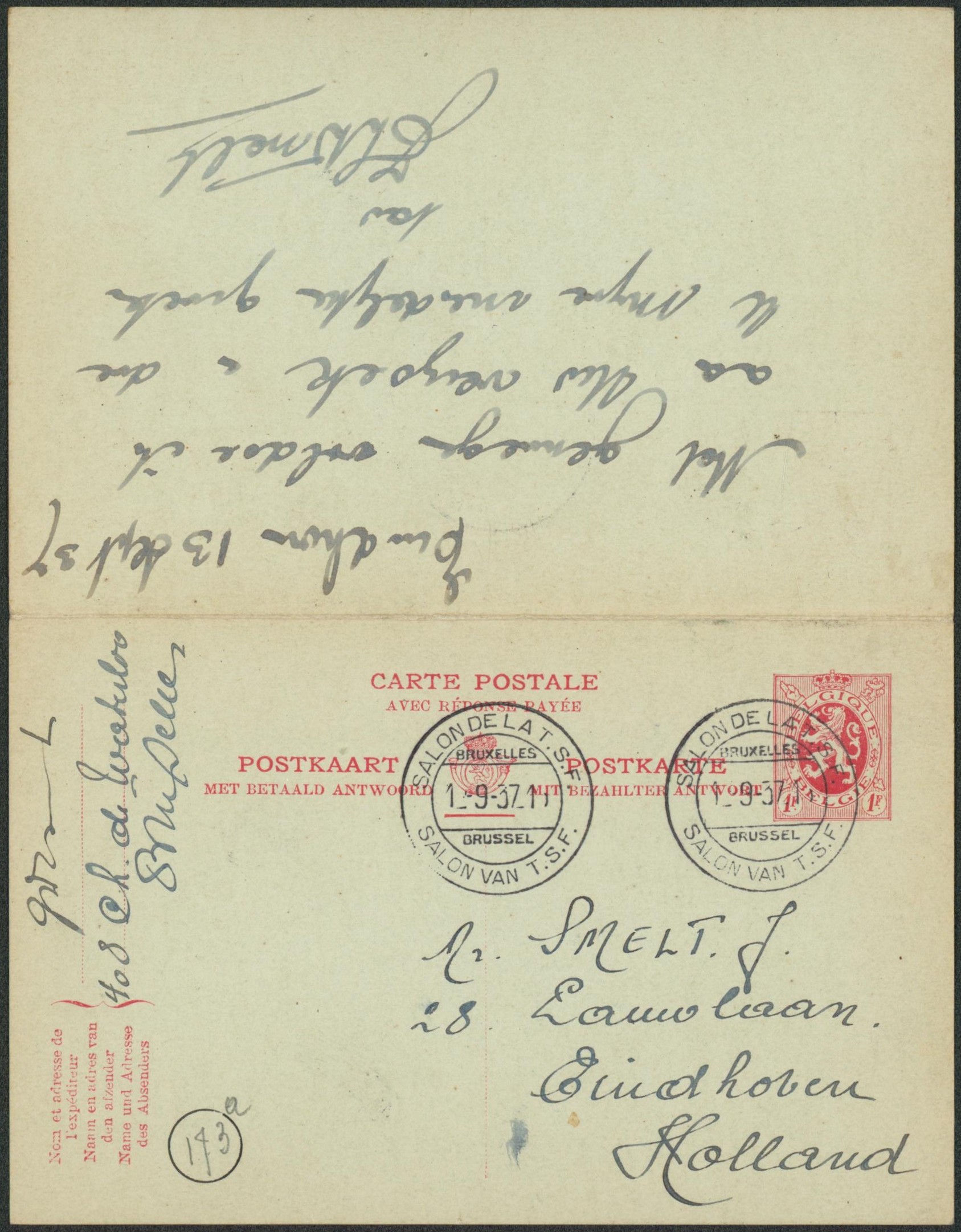 EP (double) au type1F rouge trilingue (SBEP n°103) de Salon de la T.S.F. Bruxelles > eindhoven (Hollande) + retour. Complet, TB
