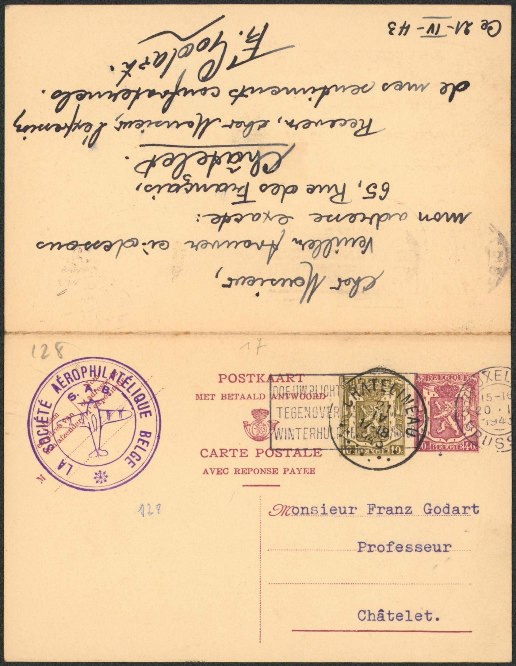 EP (double) au type 40C + 10C petit sceau (SBEP n°122NF) de Chatelineau > Chatelet + retour de Chatelineau > Bruxelles.