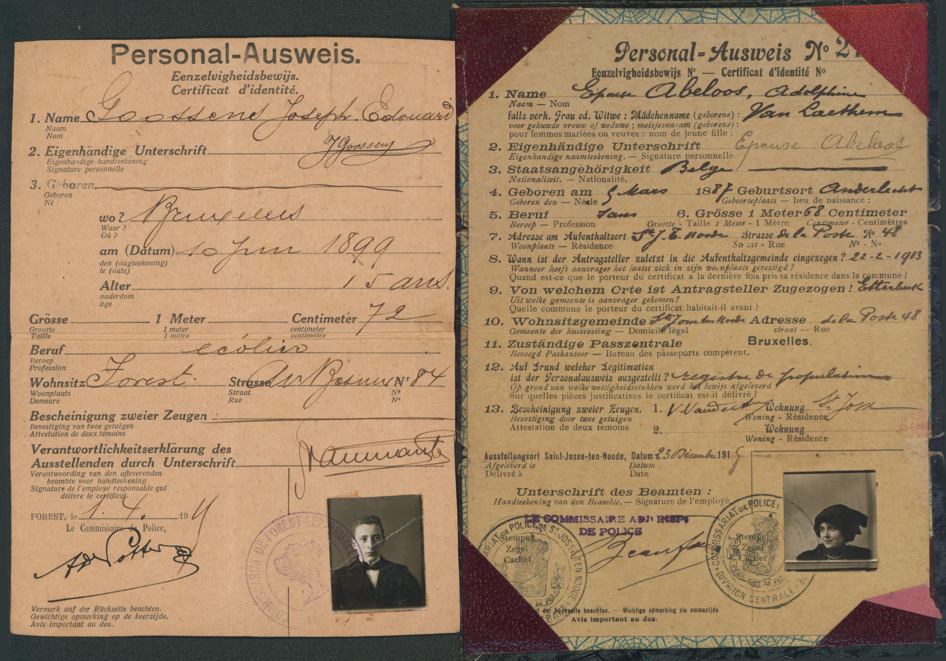 Ensemble de deux Personal-Ausweis / Certificat d'identité (région de Bruxelles) çàd St-Josse-Ten-Noode et Forest / Commisariat de police.