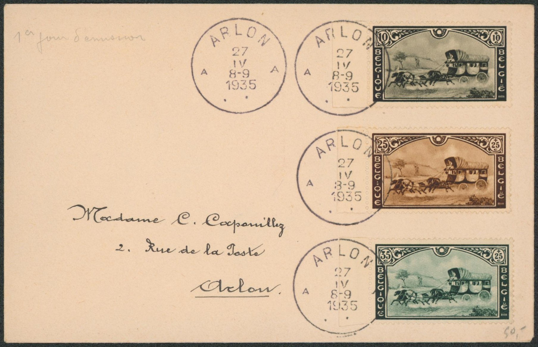 Série complète (type FDC) - n°407/09 sur lettre oblitération premier jour, de et vers Arlon.