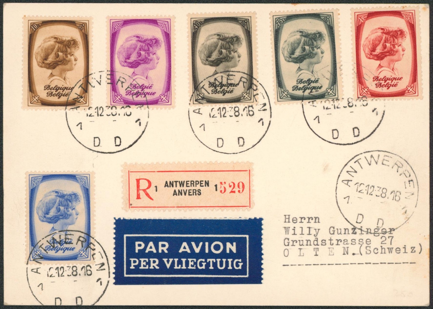 n°488/93 sur carte (sans texte) par avion en recommandé de Antwerpen > Olten (schweiz)