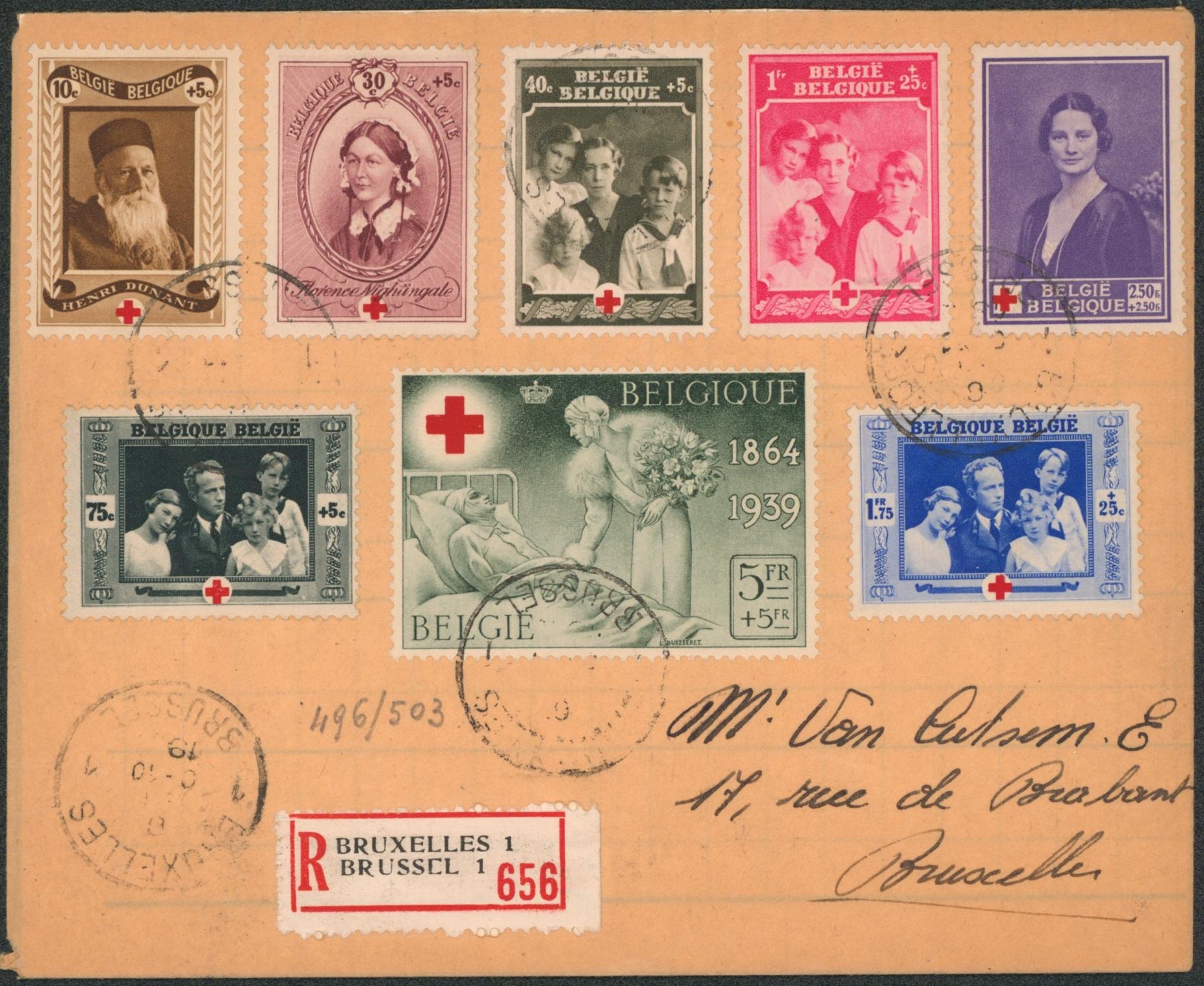 Série complète - n°496/503 çàd série croix-rouge sur lettre en recommandé de et vers Bruxelles.