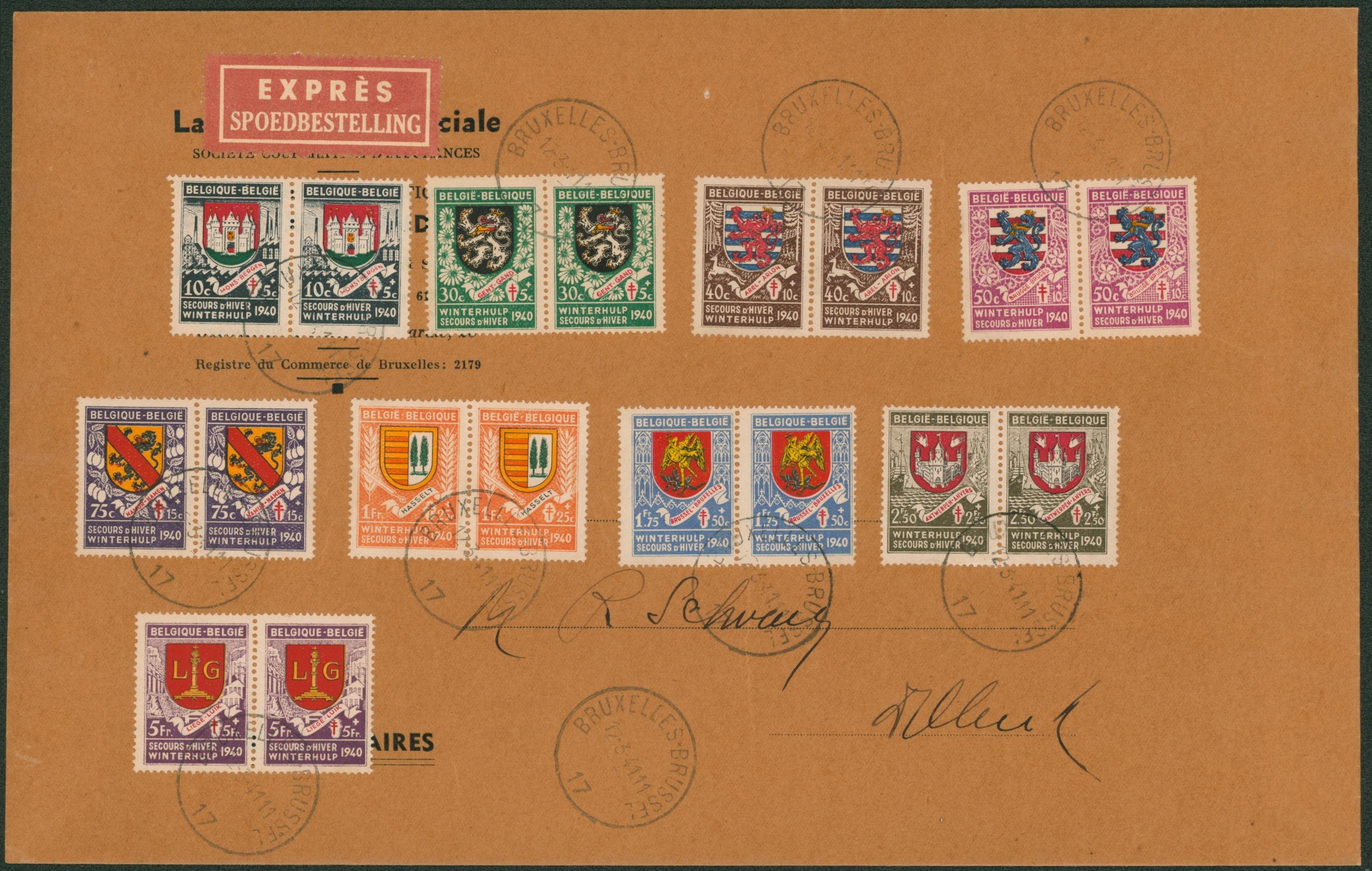 Secours d'hiver (n°1) - série complète en paire sur grande env. en expres de Bruxelles > Wilriek