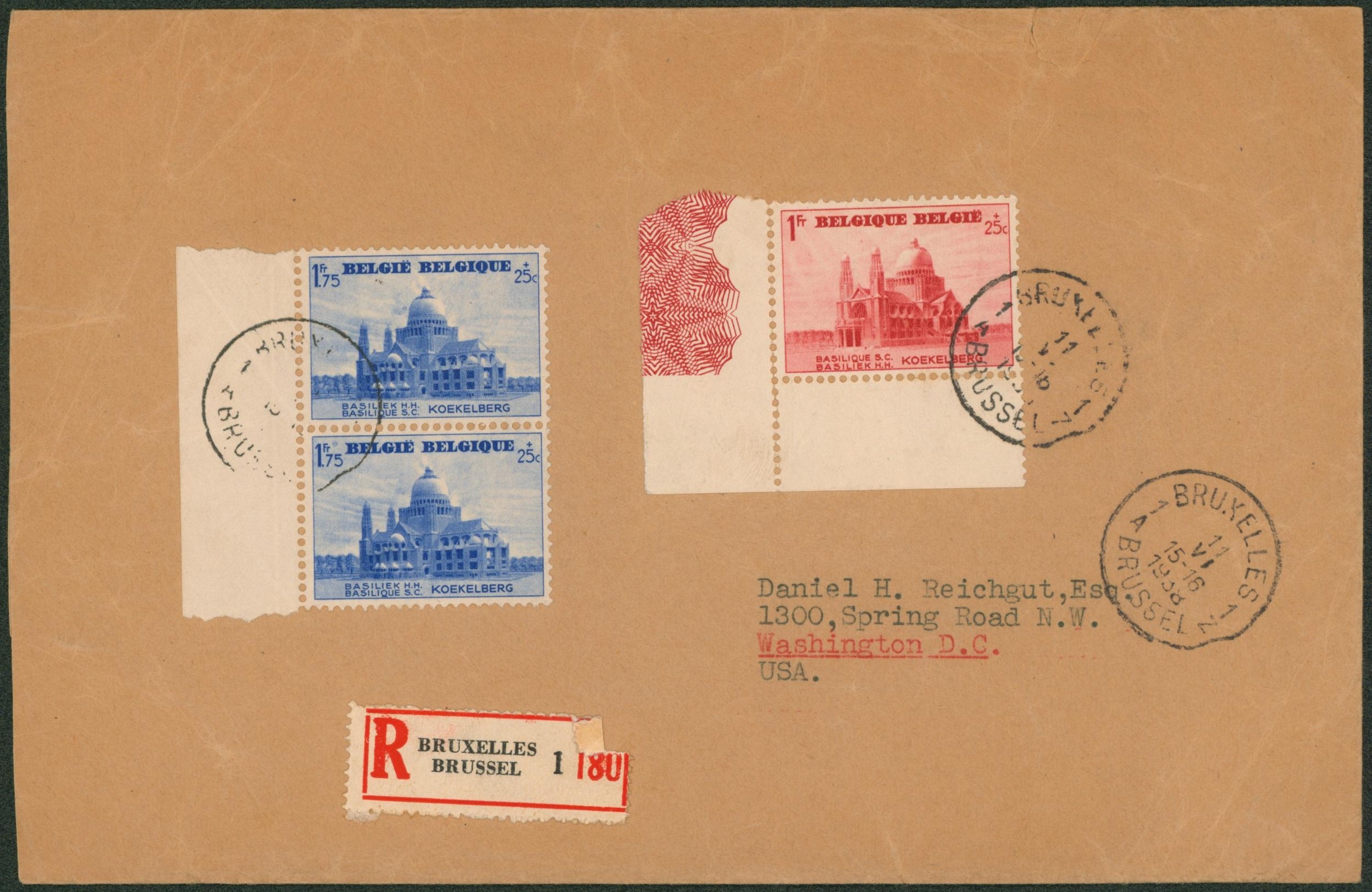 n°474 BDF + 475 en paire sur grande env. en recommandé de Bruxelles > Washington.