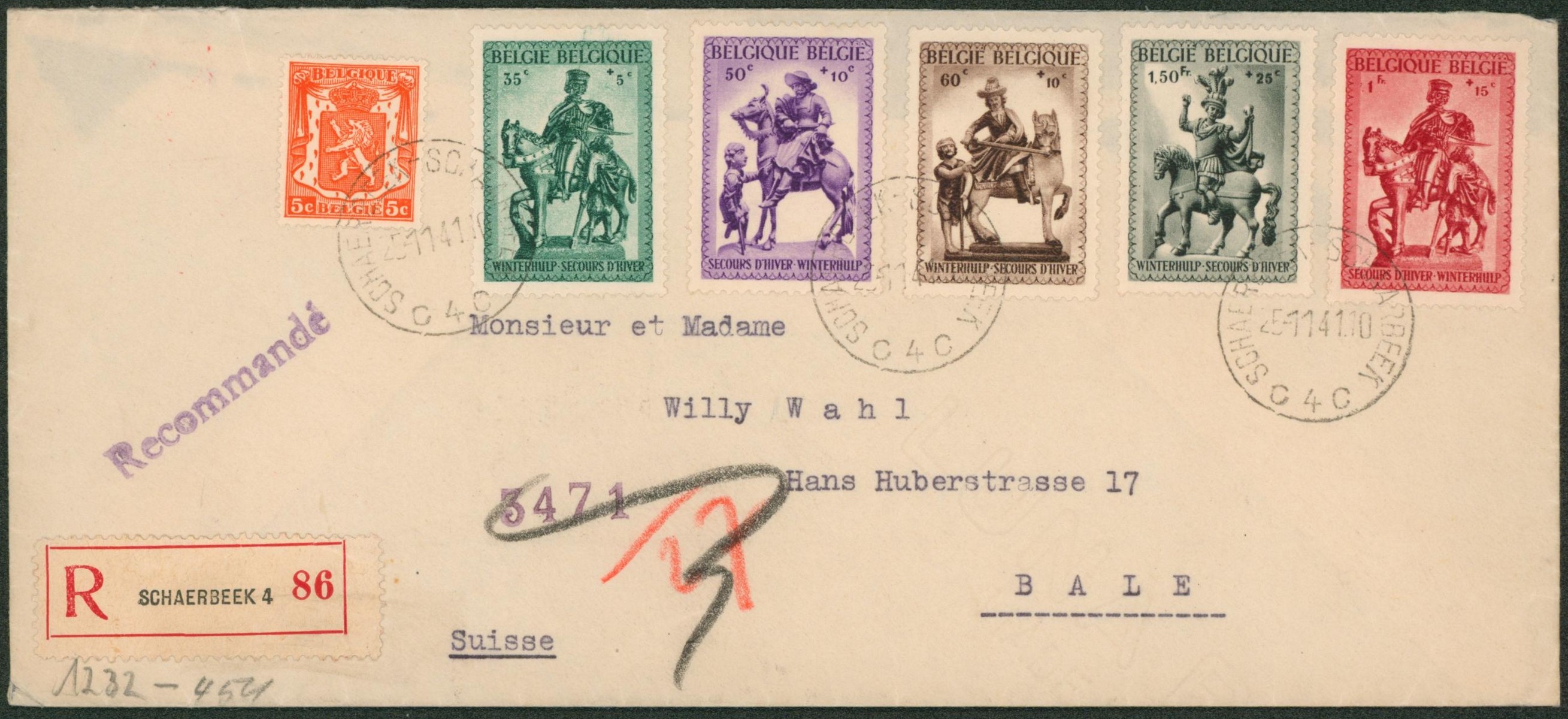 Secours d'hiver - affranch. Mixte sur grande env. en recommandé de Schaerbeek > Bale (Suisse)