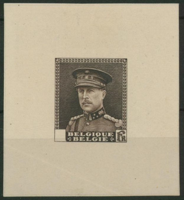 Essai - épreuve du coin sans indication de la valeur au type Albert I Képi, brun Superbe état !