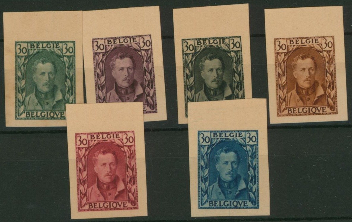 Essai - proposition d'un auteur inconnu à l'effigie du Roi Albert Ier (Type 2) 6 exemplaires (nuances) du 30ctm, papier épais.